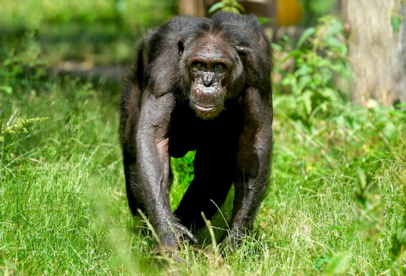 Schimpanse Epulu ist 55 Jahre alt Am Freitag, den 23.6.23 wurde der männliche Schimpanse unserer fünfköpfigen Seniorengruppe stolze 55 Jahre alt. Dies ist ein Zeichen