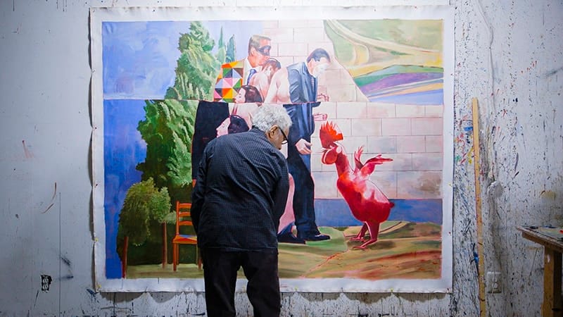 Nicky Nodjoumi, Jahrgang 1942, ist einer der bekanntesten Künstler aus dem Iran, aber er lebt in New York. Künstlerisch wurde er bekannt für seine gebrochenen und verfremdeten Darstellungen von Männerfiguren, oft in Anzug und Krawatte. Sie sind oft Symbole korrupter Macht wie unter dem Schah Regime, das Nicky Nodjoumi einst leidenschaftlich attackierte. Jedoch musste der Künstler 1980 aus dem Iran fliehen, nachdem eine Einzelausstellung von ihm von Islamisten zerstört und anschließend geschlossen worden war. Jahrzehnte danach versucht Nicky Nodjoumi gemeinsam mit seiner Tochter Sara, die auch als Co- Regisseurin dieses Dokumentarfilms fungiert, die einst gewaltsam verschwundenen Gemälde wiederzufinden. Bei der Suche gelingt es Sara dabei, langsam zu verstehen, warum die politische Situation im Iran so lange schon so prekär ist. Eine wichtige Gesprächspartnerin ist dabei auch ihre Mutter, die berühmte Künstlerin Nahid Hagigat. Ein Politthriller über Kunst im Iran.