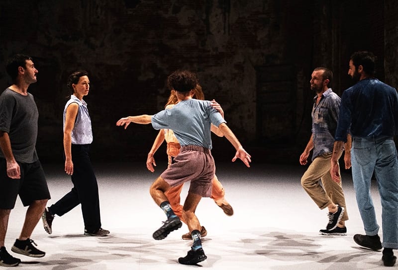 Das Stück lädt dazu ein, die Perspektive zu wechseln und die Zwischenräume in den Fokus zu nehmen. Sechs Performer*innen teilen den Raum mit dem Publikum, gehen, begegnen sich, kreuzen sich. Gemeinsam formen sie veränderliche Räume, Orte und Nicht-Orte. In ihrem andauernden Aushandeln von Raum und Distanz lassen die hervorragend aufeinander eingespielten Tänzer*innen vielschichtige Bewegungsmuster erkennen.