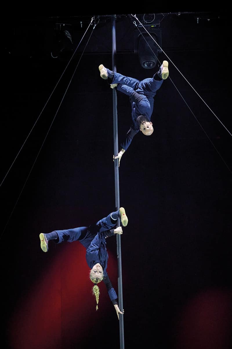 Sebastian & Flurina sind ein ebenso brandneues wie außergewöhnliches Duo am Chinesischen Mast aus Berlin. Ihr aktuelles Programm „FarFall“ zeigt eindrücklich, was ein Mast – zwei Menschen – ein Herz bedeutet: Fernab von alten Bildern und Bewegungsmustern haben sich die beiden ihre eigene Welt gebaut, voller Zusammen-arbeit, Spiel und Leidenschaft. Akzente und fließende Bewegungen, Dynamik und Kraft bringen die beiden in Einklang und verlieren dabei nie ihren eigenen, einzig-artigen Rhythmus.