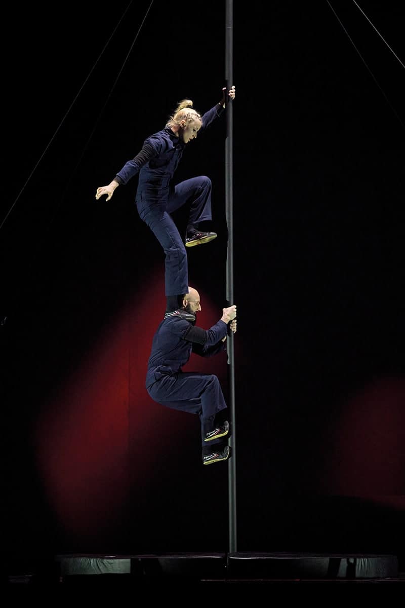 Sebastian & Flurina sind ein ebenso brandneues wie außergewöhnliches Duo am Chinesischen Mast aus Berlin. Ihr aktuelles Programm „FarFall“ zeigt eindrücklich, was ein Mast – zwei Menschen – ein Herz bedeutet: Fernab von alten Bildern und Bewegungsmustern haben sich die beiden ihre eigene Welt gebaut, voller Zusammen-arbeit, Spiel und Leidenschaft. Akzente und fließende Bewegungen, Dynamik und Kraft bringen die beiden in Einklang und verlieren dabei nie ihren eigenen, einzig-artigen Rhythmus.