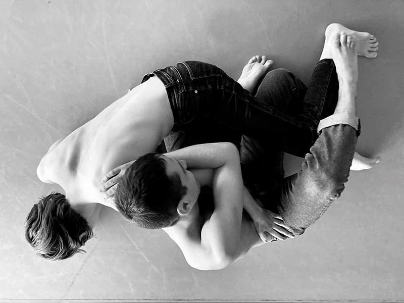 In „Astraland” treffen Luca Seixas` choreographische Recherchen und Sarah Fischer Luckows physisch-stimmliche Arbeit auf Mikaël Champs` Videokunst. Die zwei Performer*innen inspirieren einander, unterstützen sich und fordern einander heraus. Mit tänzerischen und stimmlichen Ausdrucksmitteln erkunden sie dynamische Regeln, fluide Rollen und unsichere Ergebnisse.