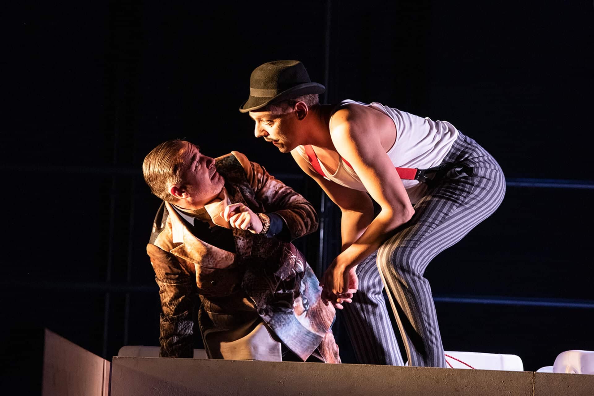 Es knistert und lodert, prasselt und brennt – Brandstifter sind in der Stadt und lassen nachts die Dächer über den Köpfen der brav schlafenden Bürger in Flammen aufgehen. Die Zeitungen berichten: Die Feuerteufel würden sich als Hausierer ausgeben, um Obdach bitten, sich in den Dachböden einnisten und von dort die vernichtenden Brände zünden. Bestenfalls ein wenig leichtsinnig erscheint es da, dass Gottlieb Biedermann, erfolgreicher Haarwasserfabrikant, dem Hausierer Schmitz Quartier auf seinem Dachboden bietet. Auch als dieser gemeinsam mit einem Freund Fässer auf den Dachboden rollt, mit Zündschnüren hantiert und Benzingeruch in jede Ritze des Hauses dringt, verteidigt Biedermann seinen Glauben an das Gute im Menschen. Bis zuletzt kämpft er lachend gegen sein Image des ängstlichen Spießers und gibt – in der Hoffnung, verschont zu bleiben – den Brandstiftern selbst die Streichhölzer in die Hand. In seinem 1957 verfassten „Lehrstück ohne Lehre“ berichtet der Schweizer Schriftsteller Max Frisch von der Entscheidung für den Weg des geringsten Widerstands – mit all seinen vernichtenden Konsequenzen.