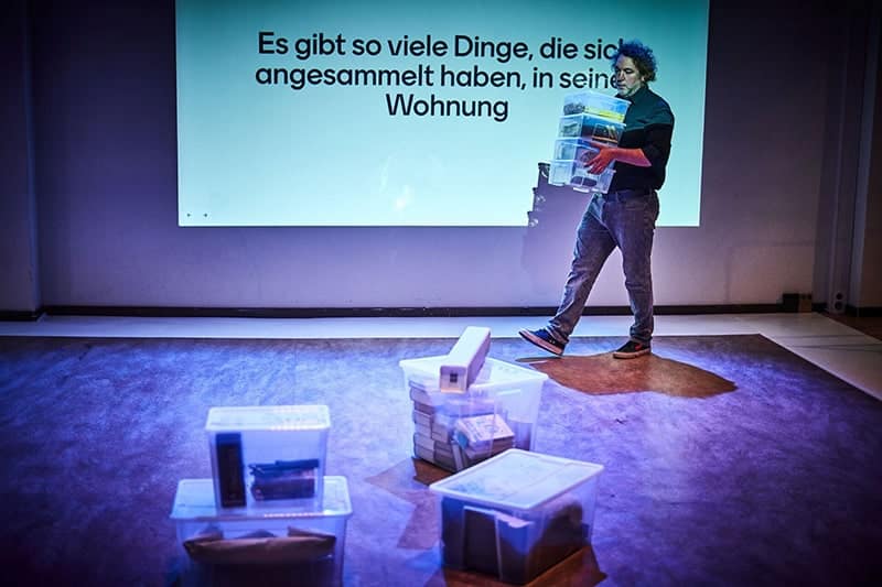 Mit »Common Things“ entwerfen Turbo Pascal ein Solo, in dem Frank sich mit den unterschiedlichen gesellschaftlichen Stimmen in seinem Kopf auseinandersetzt. Was kommt ins Regal, was bleibt besser in der Kiste, was kann oder muss auf den Müll? Und was soll vielleicht einmal weitervererbt werden? Kann das Publikum ihm helfen? Das Solo ist nicht nur eine Inventur von Franks persönlichem Erbe, sondern auch ein Kommentar zur Flexibilität und Anpassungsfähigkeit in einer sich stetig verändernden Welt. Wie oft ist man im Laufe eines Lebens bereit, sich zu verändern?