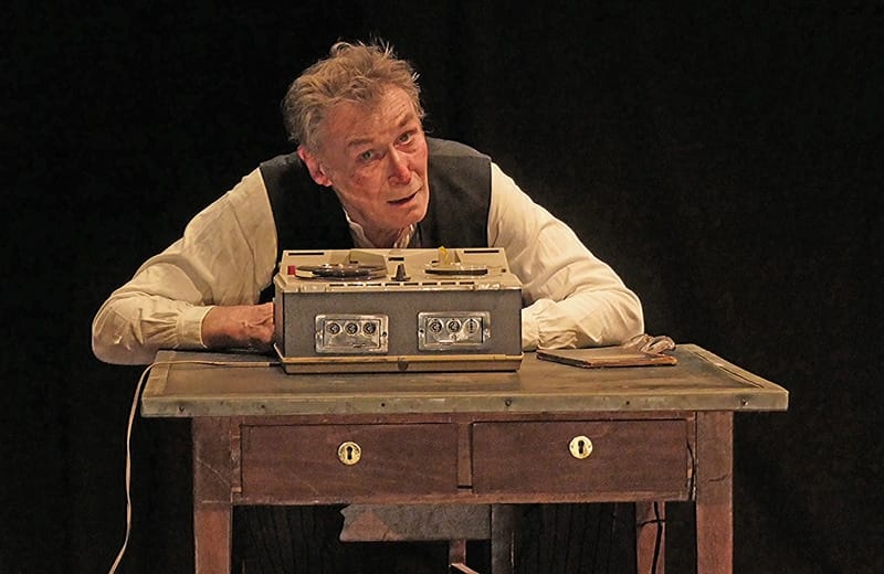 Krapp, ein alter Mann, hält an seinem Geburtstag, wie jedes Jahr, Rückschau auf sein Leben, indem er eine Art Jahresbericht auf einem Tonband festhält. Vorher kramt er aus einer Schachtel ein in der Mitte seines Lebens besprochenes Tonband heraus, und hört es ab. Die Begegnung des alten Mannes mit seinem um 30 Jahre jüngeren Ich enthält absurde, tragikomische, aber auch anrührende Momente. Beckett ersann in der Mitte seines Lebens dieses Portrait eines Einsamen, der letzten Endes den Zugriff auf sein Leben verloren hat. Wolfgang Graczol, künstlerischer Leiter des Taeter- Theaters, ist in der Rolle des Krapp zu sehen.