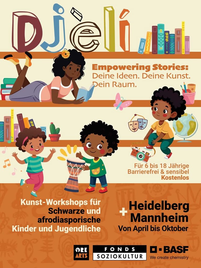 Wir von Oré Arts, einem Kollektiv Schwarzer/Afrodiasporischer Künstler:innen in und um Heidelberg, arbeiten aktiv gegen antischwarzen Rassismus, indem wir kreative Empowerment-Räume durch Kunst (Performance, Musik, Film, Poetry, Tanz) schaffen, im Rahmen von Workshops, Paneltalks und Aufführungen unserer Werke. In diesem Jahr starten wir mit unserem neuen Projekt Djèlí. Ein Storytelling-Projekt für Kinder und Jugendliche afrikanischer Abstammung im Alter von 6 bis 18 Jahren. Djèlí startet im März 2025 und bis Oktober 2025 werden wir auf monatlicher Basis Workshops sowie interaktive Lesesessions anbieten. Unsere Motivation für Djèlí entspringt der Erkenntnis, dass die jüngsten Ereignisse die dringende Notwendigkeit unterstreichen, das Selbstbewusstsein und die Widerstandskraft Schwarzer/Afrodiasporischer Kinder und Jugendlicher zu stärken und nach dem Vorbild des Mottos „die Würde der Zielgruppe zu schützen und zu achten“. Durch kreative Ausdrucksformen im Safer- und Braver-Space dürfen die Teilnehmer:innen den Raum einnehmen und Geschichten und Visionen gestalten, sei es durch Malen, Tanzen, Fotografie und mehr.