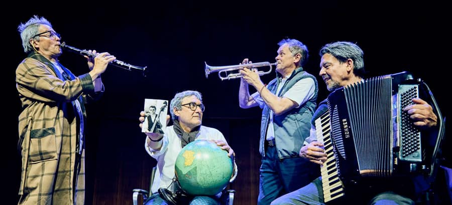 In ihrer neusten Produktion „Vergissmeinnicht“ lädt die preisgekrönte Musikvermittlungscompagnie aus Wien „Die Schurken“ ihr Publikum von Jung bis Alt ein, sich mit vier befreundeten Musikern auf die Suche nach Glücksmomenten in der Vergangenheit zu machen. Um ihrem durch Vergesslichkeit in Not geratenen Freund zu helfen, begeben sie sich mit ihm auf die Reise durch seine Erinnerungen. Die gemeinsame Musik ist ihnen Wegweiser und mit Klängen aus fernen Ländern finden sie die verlorengegangene Lebensfreude wieder.