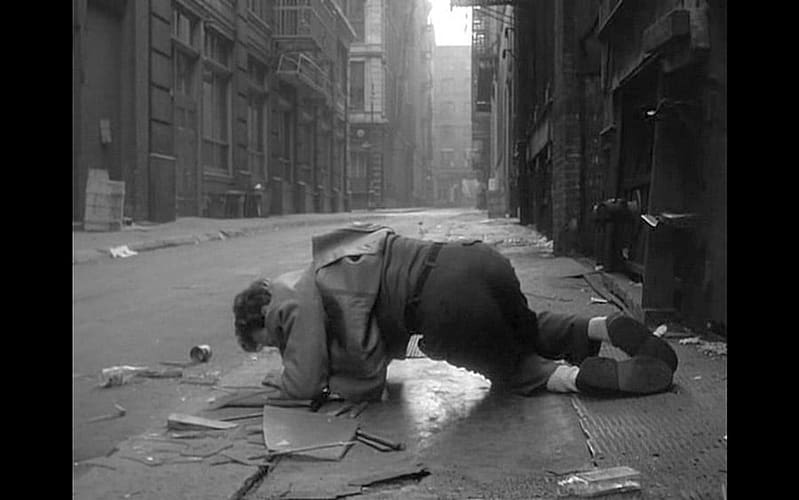 Antwort: Dass sie in unzähligen Bildern festgehalten ist – Bilder, die das Leben in der Stadt dokumentieren. Oft unbeabsichtigt, nebenbei: weil sie als Kulisse eines Krimis dient. So wie in Stanley Kubricks frühem Noir KILLER`S KISS (1955), in dem man bereits seine Erfahrung als Straßenfotograf erkennen kann.