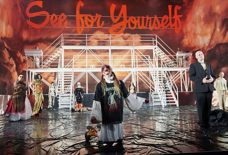 König Ödipus ringt mit seinem Schwager Kreon um Konzepte politischer Herrschaft – wie viel Wahrheit ist dem Volk zuzumuten? Seine Gattin Iokaste ist von der Urteilsfähigkeit der Eliten überzeugt und hat für die einfachen Bürger*innen nur milde Verachtung übrig. Der Chor der »Wohlstandswutschnaubenden“ fordert Teilhabe an Entscheidungsfindungen und wünscht sich nichts sehnlicher, als dass die Dinge so bleiben, wie sie sind. Der blinde Seher Teiresias hingegen hat sich am Fußsockel der Macht eingerichtet und verkündet, was die Menschen hören wollen. Eine Welt ohne Wachstum ist auch für ihn schlicht nicht vorstellbar. Doch Pythias Orakel bleibt Mahnung: »dass das gesetz, mehr von allem zu besitzen, jetzt finally an seine grenzen stößt“. Aus ist die Party und vorbei.