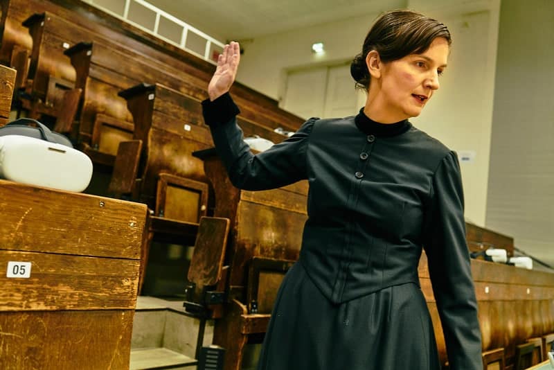 Für diese besondere Inszenierung öffnet der historische Hörsaal auf dem Philosophenweg im Institut für Theoretische Physik der Universität Heidelberg seine Pforten. Mit Virtual Reality und Live-Schauspiel spürt das Kollektiv RAUM+ZEIT dem Beginn der Psychoanalyse mit heutigem Blick auf das Phänomen der Hysterie nach. Die Gruppe wurde zuletzt mit dem Friedrich-Luft-Preis für die beste Berliner Inszenierung 2022 ausgezeichnet.