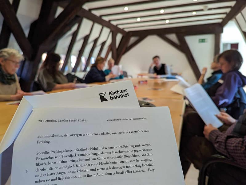 Wie es funktioniert: Menschen kommen in einem geschützten Raum für etwa 90 Minuten zusammen, um gemeinsam Weltliteratur – eine Geschichte und ein Gedicht – laut zu lesen. Dabei halten sie inne, um nachzudenken und über das Gelesene und seine Wirkung zu sprechen. Es ist kein Vorwissen nötig, alle können mitmachen, der Eintritt ist frei.