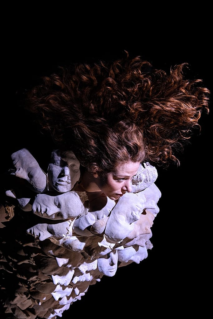 Die Performance.Installation „GesICHter“ fragt: Ist ein Bild von mir noch ICH? Sind viele Bilder von mir mehr als ICH? Kann mein Bild mehr ICH sein als ICH selbst? Hierfür tastet das Solo mit Masken, Videos, Licht, Sound und Körper im Raum die innere Physiognomie der Einsamkeit ab und berührt die Grenzen zwischen GesICHt und ICH sowie zwischen ICH und du.
