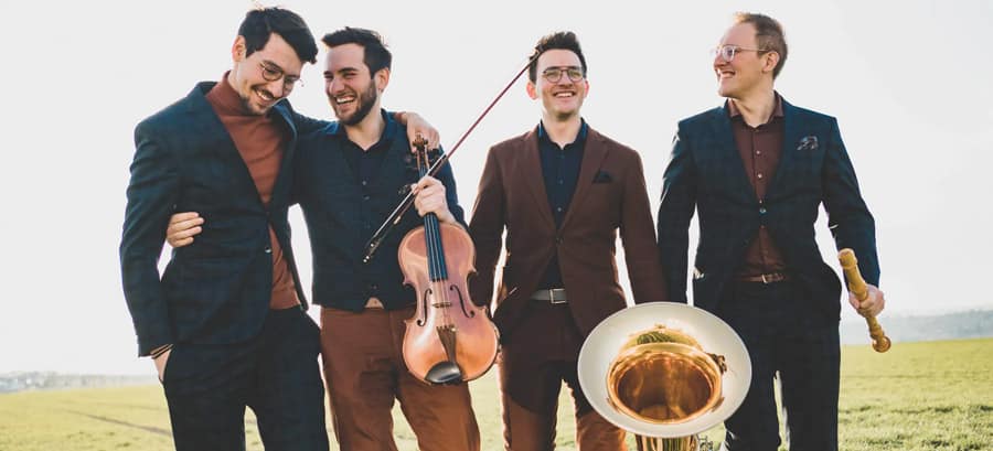 Vier Brüder, die neu definieren, wie klassische Musik klingen kann: In ungewöhnlicher Instrumentenkombination mit groovigen Kompositionen verbinden sie Klassik, Jazz und Pop zu einem Klangerlebnis voller Humor und Energie. 2022 machten die Hanke Brothers als Mitgestalter der ersten re:start-Ausgabe mit zahlreichen Konzerten in Heidelberg auf sich aufmerksam. Mit diversen Preisen ausgezeichnet, haben sie sich in der Konzertlandschaft seitdem einen Namen als wegweisende Klassikbotschafter und Musikvermittler gemacht. Nun kehren sie nach Heidelberg zurück und bringen frisch komponierte Musik unter anderem von Oliver Davis und Aleksey Igudesman mit, die getreu dem Motto „Zurück nach vorn“ Vergangenes mit Heutigem verbindet. Ein Konzert für alle Generationen, für Klassikfans wie für diejenigen, die Musik neu entdecken möchten.