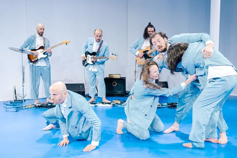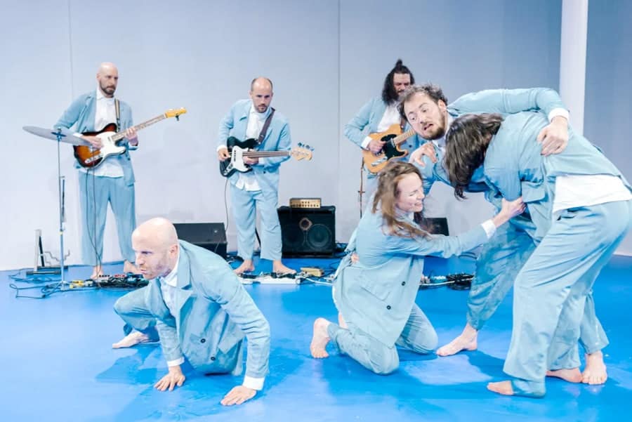 Wir befinden uns inmitten der Klimakrise. Wir alle. Der Wind fetzt uns Hoffnungsfrohen so sehr um die Ohren, dass wir uns nur noch an unsere Rechtfertigungen und Entschuldigungen klammern. Denn: Man tut, was man kann. Und trotzdem ist es nicht genug. Sehnsuchtsvoll erinnern wir uns an früher und begreifen nicht, wie wir angeblich die weitest entwickelte Spezies sein sollen. Vier pseudo-aktivistische Charaktere einer Erste-Welt-Gesellschaft arbeiten sich an dem komplexen Thema der Klimakrise ab. Was anfangs wie ein genussvoller Tanz mit dem Wind wirkt, entwickelt sich zum ohnmächtigen Kampf gegen eine höhere Kraft. Dazu kreieren drei Musiker*innen mit E-Bass, E-Gitarren und Effektgeräten einen sphärischen Klangteppich, der sich durch die gesamte Performance zieht und die Grundlage dieser poetischen und selbstironischen Dystopie schafft.
