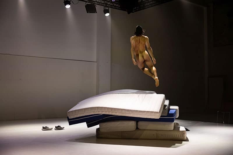In seinem Solo »JTDQNHD“ zieht der Spanier Fernando Troya blank und erörtert seine Beziehung zum Cruisen. In der Schwulenszene wird damit die aktive Suche nach einem Sexualpartner bezeichnet. Die einvernehmlichen Treffen finden hauptsächlich in dunklen, unterirdischen oder abgelegenen Orten statt. Kann dabei Intimität entstehen? In seiner autobiografisch-abenteuerlichen Auseinandersetzung, die Performance, Tanz und Theater vereint, bewegt er sich in einem lebendigen Bühnenbild aus zehn Matratzen. In »JTDQNHD“ (Jugamos tan duro que nos hacemos daño), was so viel bedeutet wie »Wir spielen so heftig, dass es wehtut“, ergründet Fernando Troya, der in den Niederlanden lebt und arbeitet, zudem die komplexe, queere Identität mithilfe der Peter-Pan-Allegorie.