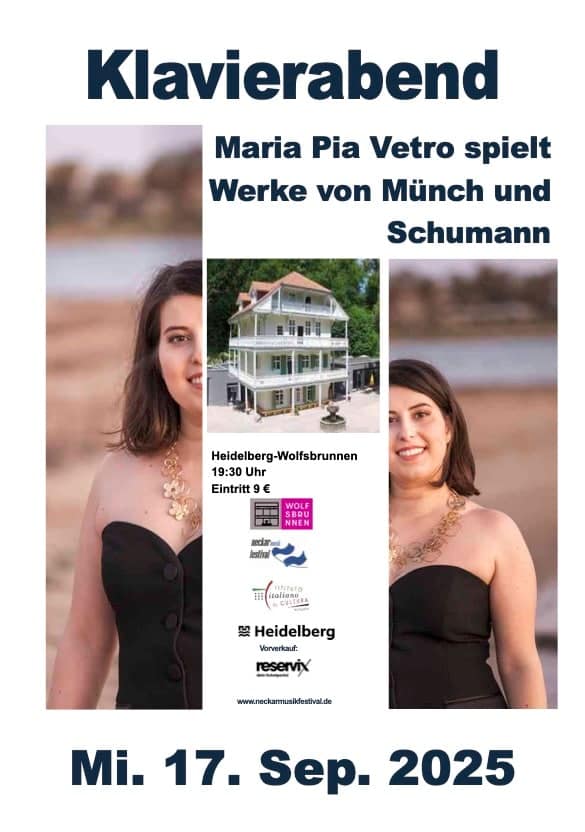 Am Mittwoch, den 17. September gibt die Pianistin Maria Pia Vetro in Heidelberg Wolfsbrunnen um 19:30 Uhr einen besonderen Klavierabend.