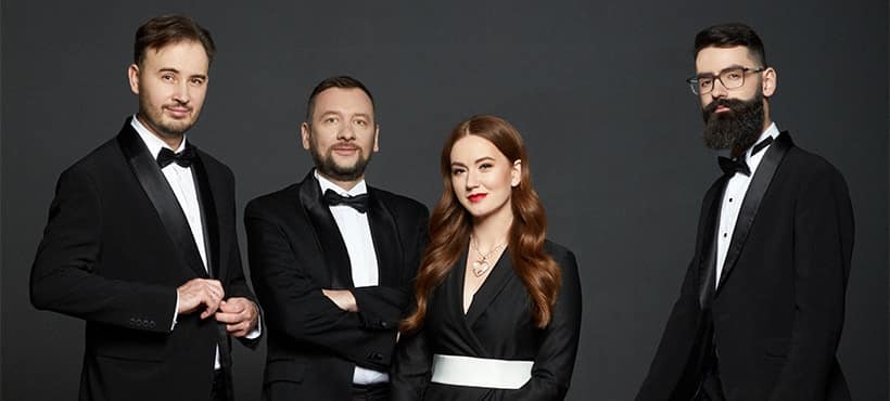 Akkordeon, Violine, Klavier und Kontrabass. Das Kyiv Tango Orchestra bietet ein umfangreiches Repertoire, darunter ukrainische Volkslieder im Tango-Stil. Dem Quartett gehören die besten Musiker der Ukraine an, die selbst berühmte Solisten und Preisträger internationaler Wettbewerbe sind. Der eigene Stil, die unglaubliche Energie, die hohe künstlerische und professionelle Leistung sowie der unverwechselbare Klang – all das macht das Konzert der vier virtuosen Musiker aus.
