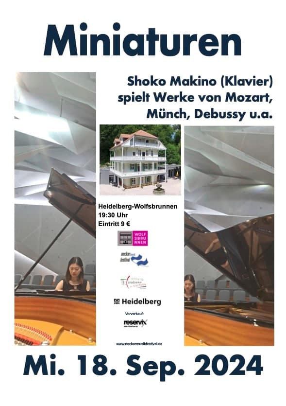 Die Kunst, mit Zinnober zu malen (aus dem Italienischen „Miniatura“) hat ihren Ursprung in dem mittellateinischen Wort „Miniatura“, die „Zierliche Malerei“ des Mittelalters in Form von Ornamenten (z. B. Verzierungen am Blattrand, Gestaltung der Anfangsbuchstaben). So pflegten die Komponisten in der Musik auch diese Form des plötzlichen musikalischen Einfalls, des freien Improvisierens, der Skizze, der unmittelbar vermittelter Emotionen, die dem Geist entspringen: dem heutigen Programm liegt dieses Konzept zugrunde, von Mozart beginnend, der zu seiner Zeit nicht nur als Pianist sondern auch als Improvisator gefeiert wurde (man denke nur an die überlieferten Kadenzen zu seinen Klavierkonzerten). Die Fantasie in D-Moll bewegt sich auf fast romantisch-rhapsodische Art und Weise, mit intim-traurigen und bedachtigen Momenten, über plötzliche Ausbrüche, bis zur verklärten D-Dur Coda. Die heute gespielten Werke Martin Münchs knüpfen an die 1997 entstandenen Kinderlieder des Autors an. In allen Parametern, der Melodik, Harmonik, Rhythmik und Form strebt Münch in beiden Zyklen nach maximaler Besinnung auf das Wesentliche, dennoch gibt es Unterschiede: so wurden die Kinderlieder in etwa pädagogischer Richtung komponiert, wie die dem Quintenzirkel folgende Reihenfolge zeigt, wobei einfachen Melodien eine ungewöhnliche Begleitung unterlegt wird, damit sich das Kind mit der neuen Musik vertraut machen kann (ein ähnliches Ziel verfolgte Bartok mit seinen Mikrokosmos).
