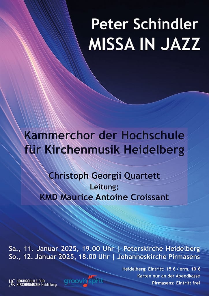 Missa in Jazz vereint anspruchsvollen Chorgesang mit den Klangwelten von Orgel, Saxophon und Schlagwerk. Musik voller Eindringlichkeit und Anmut