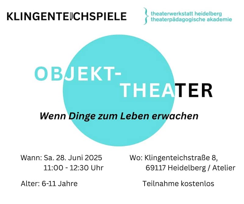 Der Objekttheaterworkshop am 28. Juni 2025 (11:00 – 12:30 Uhr) für Kinder von 6 bis 11 Jahren bietet eine kreative und spielerische Möglichkeit mit Gegenständen Theater zu spielen. Wir verwandeln alltägliche Gegenstände in lebendige Charaktere und erzählen durch verschiedene Übungen und Spiele mit ihnen Geschichten.