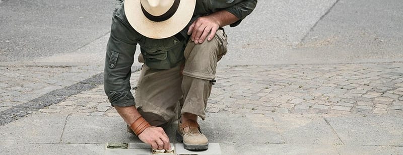 Dörte Franke begleitet den Künstler auf seinen Verlegungstouren und bei der Arbeit in seinem Kölner Atelier. Durch den persönlichen Zugang zu ihm und ihrer Mutter Uta Franke, der Koordinatorin des „Stolpersteine“-Projektes, erhielt die Regisseurin Einblicke in einen Arbeitsalltag, der sich immer mehr zu einer logistischen und auch persönlichen Herausforderung entwickelt.