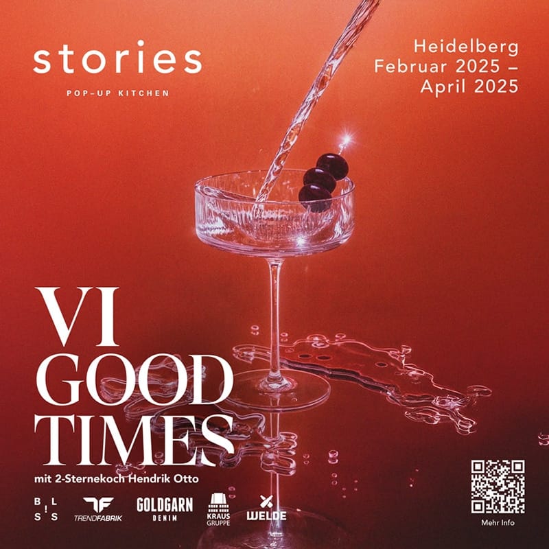 Heidelberg. Ab Februar nächsten Jahres präsentiert die Heidelberger Gastronomiegruppe Bliss für drei Monate das sechste Kapitel ihres Pop-up-Konzepts „Stories“. Das erfolgreiche Format, das an ungewöhnlichen Orten ein ebenso ungewöhnliches kulinarisches Erlebnis bietet, wird zum zweiten Mal mit den Kreationen eines 2-Sterne-Kochs aufwarten. Im vergangenen Jahr entwickelte 2-Sterne-Koch Boris Rommel vom Schlosshotel Friedrichsruhe gemeinsam mit Sven Günther, Küchendirektor der Bliss-Gruppe, das mehrgängige Menü. Diesmal wird Hendrik Otto, der bis 2021 über zehn Jahre lang das Restaurant Lorenz Adlon im Hotel Adlon Kempinski prägte, dem Menü seine Handschrift geben. Im Adlon verdiente er sich nicht nur über all die Jahre zwei Sterne, sondern bekochte auch hochrangige Gäste wie Angela Merkel und Barack Obama. Seit zwei Jahren ist er mit