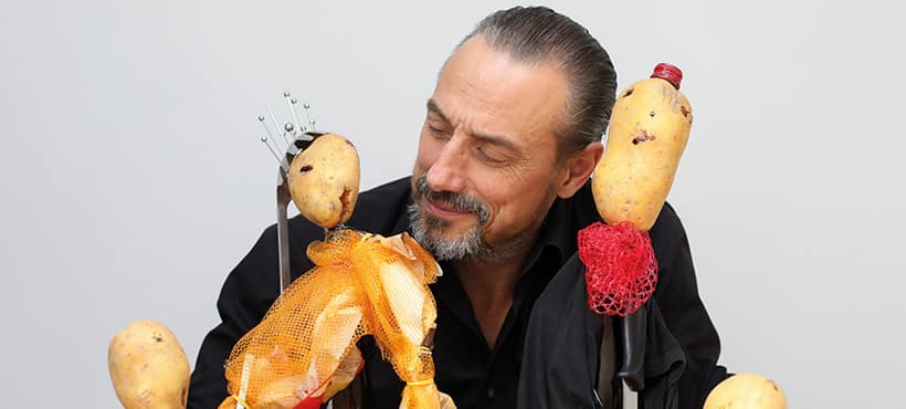 Hier wird aufreibendes Theater gespielt, nicht nur für die Kartoffeln, die, nun der Erde entrissen, nur noch eine Bestimmung haben: die Bühne! Doch nicht alle werden die Tischplatte, die die Welt bedeutet, betreten: Zu viele teilen sich das Schicksal im Drei-Pfund-Netz und warten auf das alles entscheidende Vorsprechen, dem Casting! Dieses geschieht vor jeder Vorstellung – und schließlich wählt das Publikum den Jugendlichen Liebhaber und die Junge Naive. Um dann zu fragen: Was ist Liebe? – Neigung? Schicksal? Wer gibt uns mehr Freifläche für Liebe als Kartoffeln? Was sollte tiefgründiger sein als die Liebe zweier Kartoffeln, wenn sie aus dem Erdreich überirdisch zutage tritt?