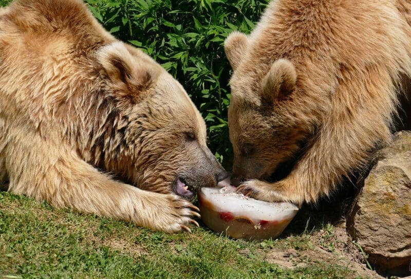 „Bei Bären ist der Einsatz der „Eisbomben“ am Spektakulärsten, weil sie den gefrorenen Futterklotz oft auch ins Wasser geworfen bekommen. Wenn sie dann im Wasser schwimmen und dabei mit den Vordertatzen die Eisbombe halten und daran nagen, ist das spannend zu beobachten“ so Reichler. Bären sind Allesfresser, d. h. für sie wird Obst, Gemüse, Fisch oder Fleisch wird als Geschmacksvariante verwendet. „Eisbomben“ werden aber auch bei anderen Tieren eingesetzt, wie z. B. bei anderen Raubtieren oder den Rhesusaffen.